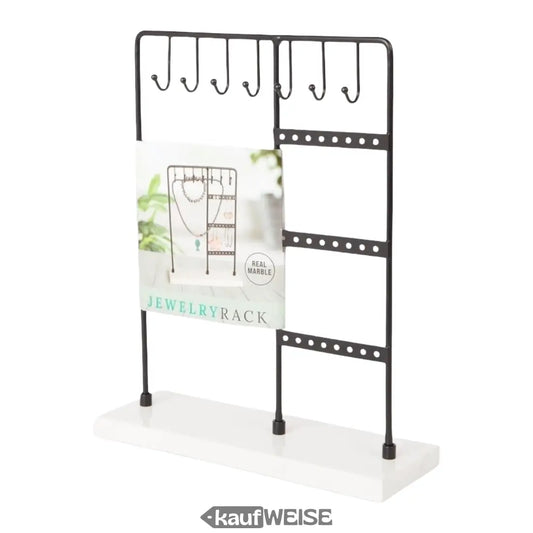 • Schwarzer Metall Schmuckständer mit Marmorplatte für Ketten und Accessoires