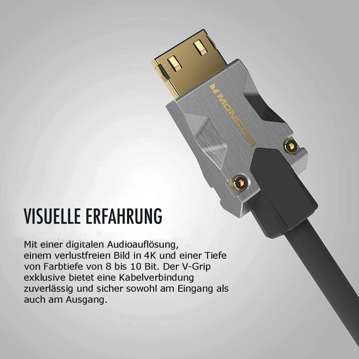 Le connecteur breveté Monster V-Grip™ s'ancre fermement dans la prise HDMI. Cela évite les interruptions du signal dues à un desserrage accidentel du câble.